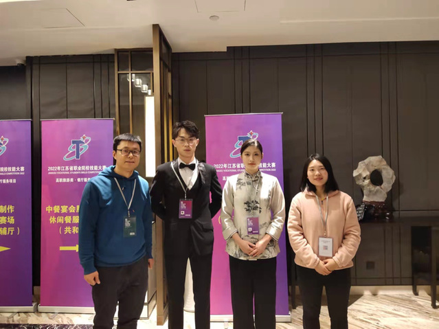 2022年1月5日到8日,“江苏省职业院校技能大赛——餐厅服务赛项”在南京旅游职业学院举办,本赛项的举办,旨在推动高职旅游大类专业教育教学改革,促进高素质、技术技能型高职旅游大类专业人才培养,以适应酒店业高质量发展需要。竞赛内容分为主题宴会设计、宴会服务、鸡尾酒调制与服务、休闲餐厅服务四大模块。由人文艺术学院朱志惠老师、耿海霞老师,旅游管理20级学生孙刘莉、黄智勇组成的竞赛团队参加了此次比赛。团队前期经过精心备赛,刻苦训练,并通过定期走访高星级酒店不断雕琢专业技能。比赛过程中,两名选手稳定发挥,中餐主题宴会设计以“一帆风顺”为主题,通过中心装饰物、杯花、船型菜单等巧妙突出主题;西餐的鸡尾酒调制环节,我校选手以独特的“Havana sunset”博得了在场评委的一致好评。最终,孙刘莉、黄智勇两位选手荣获团体三等奖。