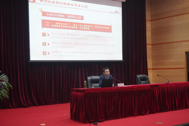 接下来,人文艺术学院党总支书记裘黎滨老师为我们做了一场题为《如何端正入党动机》的专题讲座。