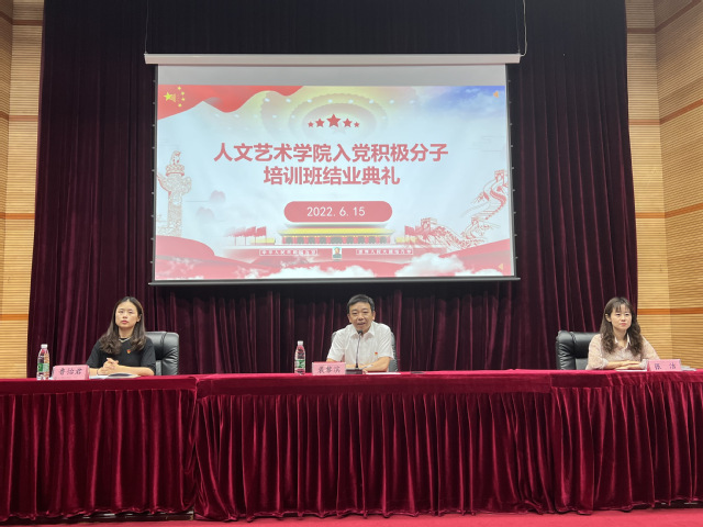 6月15日下午,人文艺术学院入党积极分子结业典礼在图书馆大报告厅举行。人文艺术学院党总支书记裘黎滨,学生工作党支部书记张洁,组织员鲁怡君以及全体积极分子参加本次结业典礼,结业典礼由张洁主持。