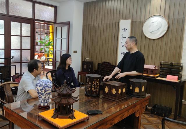 南京市非物质文化遗产“苏作小木家具制作技艺”的代表性传承人雷勇馆长接待了调研组一行。雷馆长介绍了观朴艺术博物馆是目前国内唯一一个专门从事明式古典家具研究、制作、展示的专业艺术馆,2013年被认定为南京市非物质文化遗产“苏作小木家具制作技艺”传承保护基地。