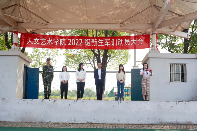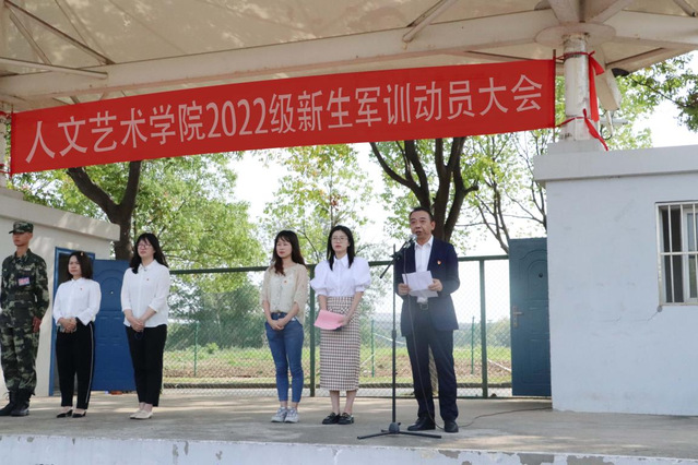 最后,党总支书记裘黎滨做动员讲话。裘书记对新生提出四点要求。一是端正对军训的认识。军训是同学们接受国防教育、爱国与集体主义教育、军队优良传统教育的一门必修课,希望学生们可以在此次军训中锤炼艰苦意志、培养优良作风。二是希望同学们服从管理,听从指挥,增强组织纪律观念。三是爱护人文艺术学院这一光荣集体,培养同学的团结协作,共同进步的集体主义精神,在集体的锻炼中树立昂扬斗志。最后裘书记强调在严明纪律的同时,合理安排好饮食和休息,注意身体健康安全。