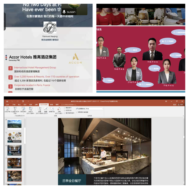 此次宣讲会共邀请17家行业内优秀企业前来参会,为我院2023届毕业生提供酒店前台、礼宾、餐饮服务、文员、家装顾问、平面设计、室内设计等岗位共计270多个。会上,各家招聘单位通过播放宣传片、PPT展示、线上交流等方式向同学们分别介绍了公司的概况、工作岗位需求、住宿饮食、薪资待遇等,并就同学们关心的问题进行了解答。