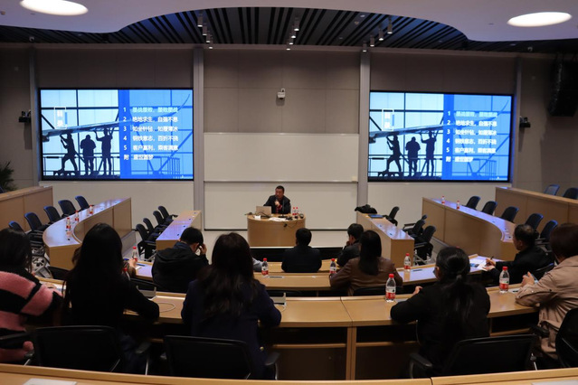 参观结束后,党员教师们前往嘉兴中国商飞客户服务训练基地,陆峥书记给我校党员教师上了一堂题为《永不放弃》的党课,以切身经历讲解了中国民航发展的艰辛历程,详细讲述了中国商飞公司的成立过程,宣贯了以客户为中心的服务理念。