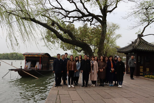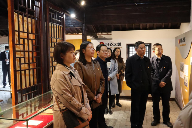 3月29日,中国商飞上海飞机客户服务有限公司党委副书记陆峥、工业设计研究所党员干部,与我校党委委员宣传部部长刘桂香、党委委员组织部部长孙俭、总辅导员潘国华、人文艺术学院党总支书记裘黎滨等各支部党员近二十人首先前往位于嘉兴新塍镇沙家浜村的嘉桐工委新塍联络处旧址进行参观。作为沙家浜初心教育基地的前身,中共嘉桐工委新塍联络处旧址所在的沙家浜村(张家浜)是嘉兴县首个真正意义上的县委驻地,见证了嘉兴革命斗争史上的不少大事要事,具有较高的政治意义和历史价值。党员们在讲解员的带领下进行参观,仔细了解、回味历史。