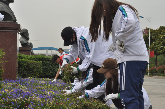 活动过程中,入党积极分子在后勤处绿化专业人员的指导下,重点清理图书馆周边区域杂草、落叶、石子、烟头、废纸等。同学们齐心协力、团结协作,用自己的行动为学校增添了一份清新,一抹明亮。