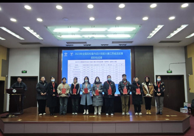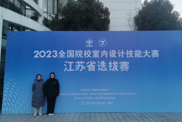 12月2日,人文艺术学院艺术设计专业学生苗诗语、高御雯参加了由中国室内装饰协会指导,江苏省室内装饰协会、室内设计职业技能等级证书江苏省工作委员会主办的“2023年全国院校室内设计技能大赛江苏省选拔赛”,经过几轮作品角逐,获高职组二等奖。