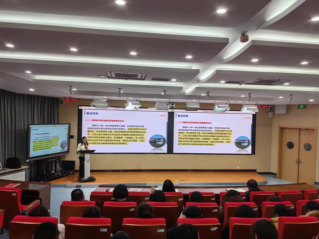 副院长李珊英组织学习了江苏省委办公厅、省政府办公厅印发《关于深化现代职业教育体系建设改革实施意见》(苏办发〔2024〕1号,以下简称《实施意见》)。《实施意见》明确提出了深化江苏现代职业教育体系改革的八项重点任务:探索省市联合建设改革新模式、打造市域产教联合体、打造行业产教融合共同体、深化职业学校教育教学改革、建设高水平“双师型”教师队伍、实施产教融合提升行动、支持技能人才多样化成长成才、促进职业教育交流合作。《实施意见》是贯彻落实党和国家推进现代职业教育体系建设改革重大决策部署在江苏的具体落实,是指引未来一段时期江苏职业教育高质量发展的重要指南。