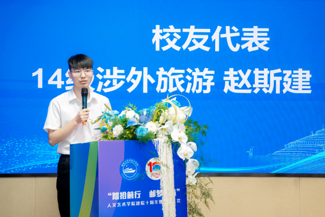 在建院十周年来临之际,兄弟学院和校友,通过不同的方式向我院表示祝贺,对学院未来发展寄予殷切期望。学院收到了航海技术学院和国际教育学院的贺信和毕业生代表王实现的视频寄语。校友代表2017届的赵斯建作“岁月如歌 情聚母校”的主题发言。他表示,在海院的三年时光,他学会了独立思考、勇于创新;学会了团结协作、共同进步;学会了感恩回馈、服务社会,这些宝贵的品质将伴随他走过人生的每一个阶段。他号召广大校友无论哪个行业,都应该牢记学院的教诲和期望,不忘学院栽培和恩师教导,用自己的专业知识和才华为社会的发展作出更大的贡献。