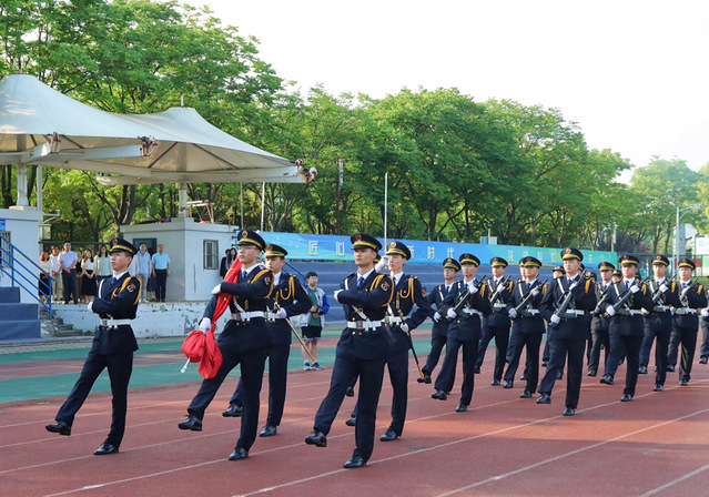 6月3日,邮轮与艺术设计学院在田径场举行升旗仪式。党委学生工作部副部长王峰、学院关工委委员章柏庚、学院党总支书记刘燕飞、院长王丽莉、党总支副书记邹国庆、副院长李珊英、副院长沈琦,全体辅导员、班主任及全体在校生参加升旗仪式。升旗仪式由辅导员赵舒主持。