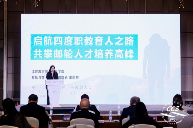 王丽莉在中国邮轮人才教育与发展峰会上作了题为《启航四度职教育人之路共攀邮轮人才培养高峰》的主旨演讲,她从有深度的融合机制、有厚度的技术平台、有宽度的合作阵地、有高度的育人模式“四度”方针出发,介绍了我校在邮轮全产业链上的育人路径,全面展示了邮轮现场工程师项目的建设成效,热切表达了江苏海事职业技术学院以培养邮轮全产业高素质技术技能人才,推动中国邮轮产业发展的决心和信心,报告获得了现场专家和观众的热烈掌声与高度认同。