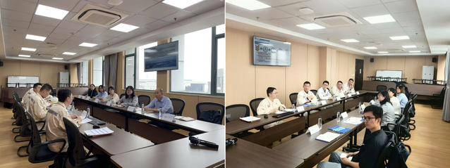 调研期间,扬州中远海运重工人力资源部郑枫部长、内装部负责人及相关部门业务骨干组成接待组,对学院团队给予热情接待。王丽莉一行首先参观了公司展厅,通过图文展板、实物模型及多媒体演示,系统了解了企业从起步到行业领先的发展历程、覆盖国内外的核心业务布局、近五年技术研发突破成果,以及未来在深海装备制造领域的战略规划,为后续合作找准了产业锚点。