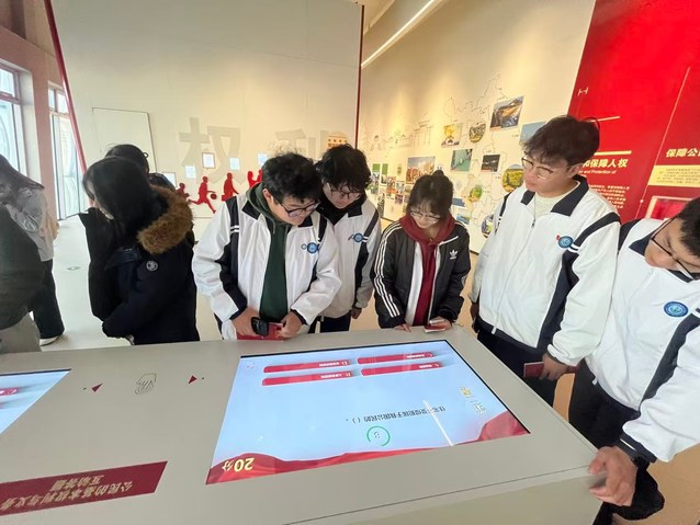 南京宪法公园是全国首个全景式宪法主题教育基地,是开展宪法宣传教育活动的重要载体。师生们沿着“寻宪、制宪、修宪、奉宪”的主线,依次参观了宪法主题雕塑、宪法历史长廊、宪法宣誓广场等场所。展区内陈列的草案手稿、历史文献和黑白照片,清晰勾勒出中国共产党领导人民探索法治道路的艰辛与坚定,让师生们深入了解了我国宪法的发展历程及其在国家治理中的根本地位,深刻感受到宪法作为国家根本大法的权威与力量,进一步树立起尊崇宪法、学习宪法、遵守宪法、维护宪法、运用宪法的法治意识。