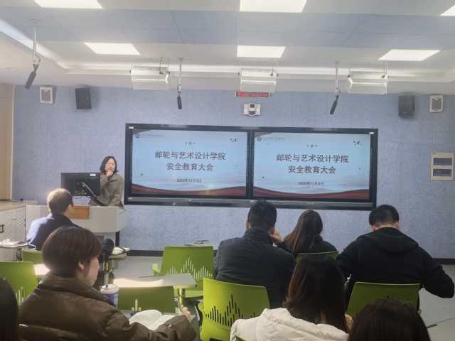 为深入贯彻落实校园安全工作要求,切实压实安全管理责任,12月3日下午,邮轮与艺术设计学院组织召开教职工安全教育大会,会议由学院党总支书记刘燕飞主持,全院教职工参加。