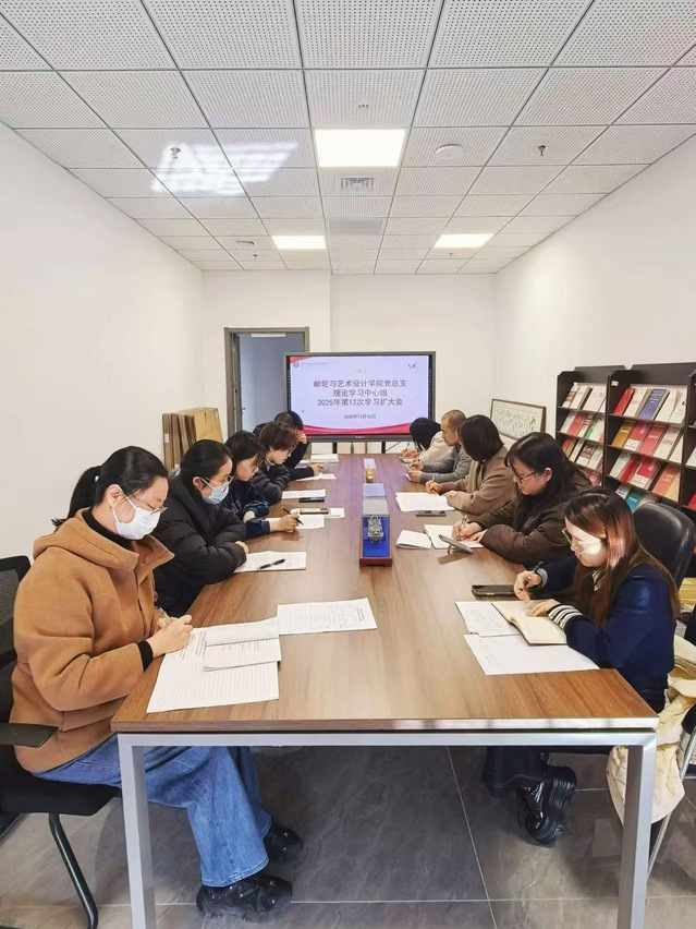 2025年12月16日上午,邮轮与艺术设计学院党总支召开2025年第十二次理论学习中心组学习(扩大)会议。学院理论学习中心组全体成员、各党支部书记以及各专业中心主任参加了此次会议。会议由党总支书记刘燕飞主持。