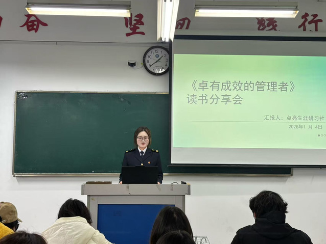 2026年1月4日晚,邮轮学院点亮生涯研习社在敬德楼403教室举办《卓有成效的管理者》读书分享会。