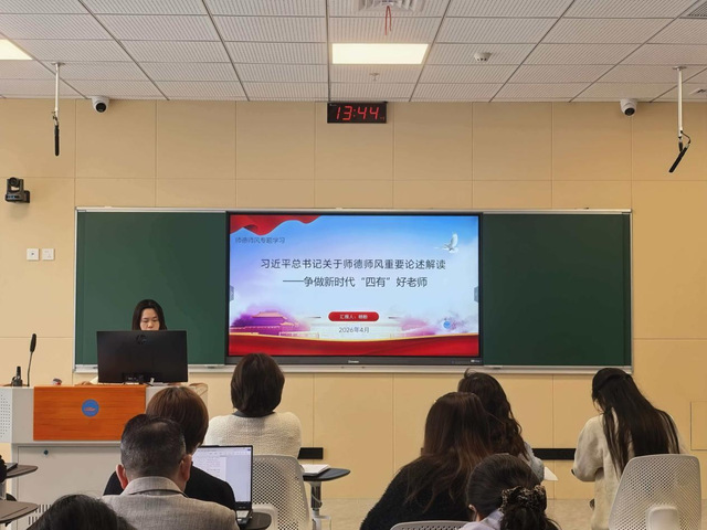 杨粉老师以“习近平总书记关于师德师风重要论述解读——争做新时代‘四有’好老师”为题作专题汇报,围绕有理想信念、有道德情操、有扎实学识、有仁爱之心,结合育人实践与典型案例,引导全体教师坚守育人初心、严守师德底线、提升育人本领。